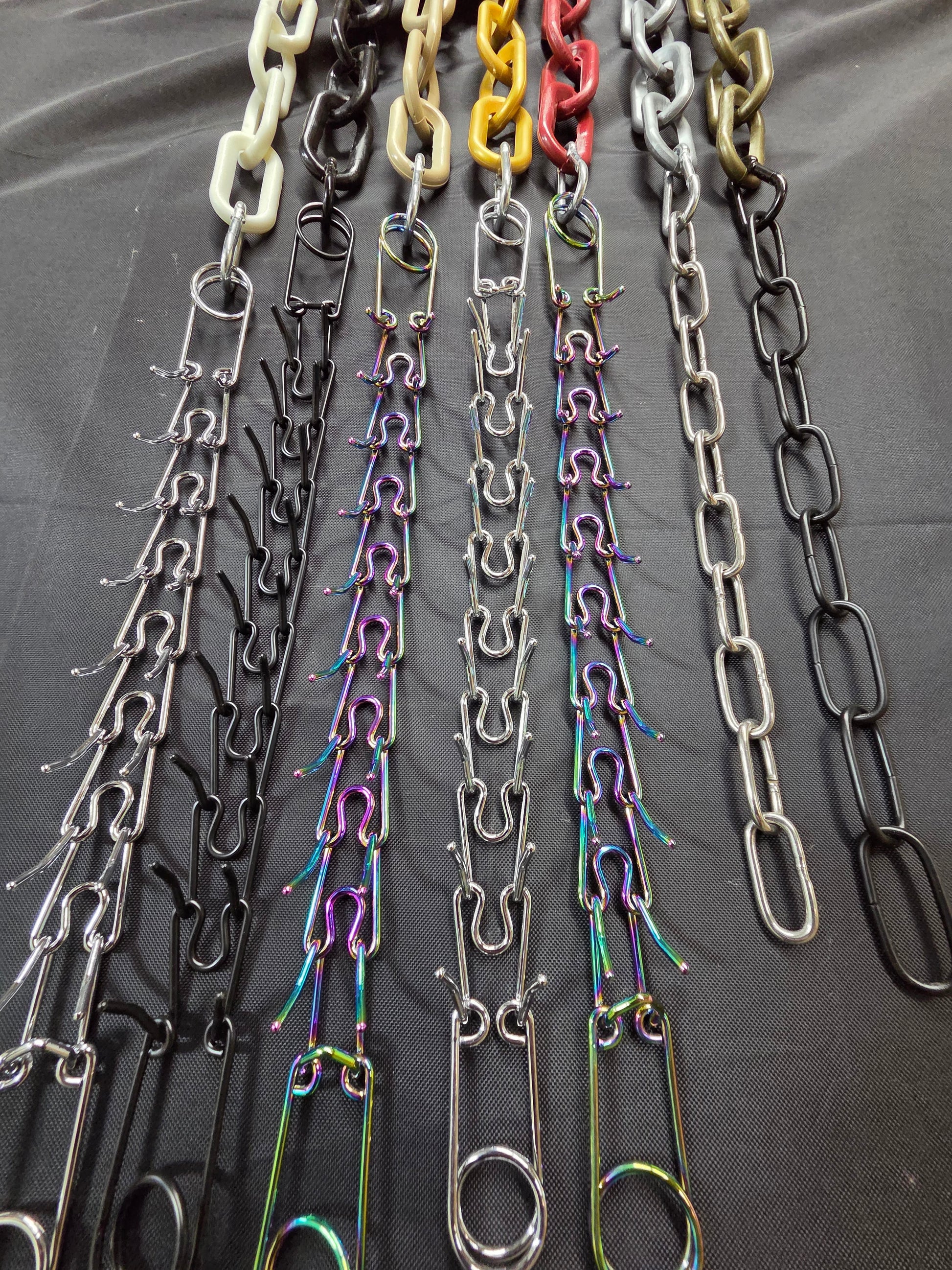 Prong chain color options: 1)Stainless Steel, 2)Matte Black metal, or 3)Rainbow metal